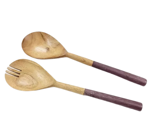 ชุดช้อนส้อมมีด้ามจับทำจากไม้อะคาเซียทำจากไม้ของขวัญขึ้นบ้านใหม่แฟนซีพร้อมที่จับทำจากเรซิ่นสีน้ำตาล