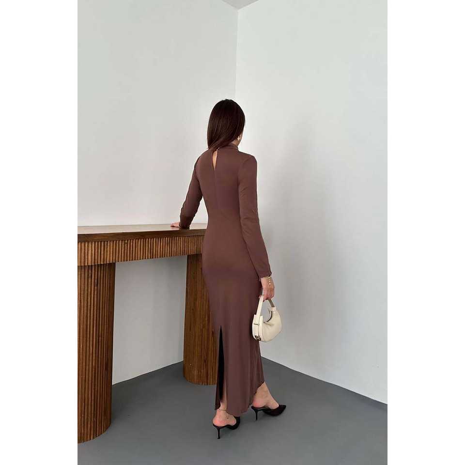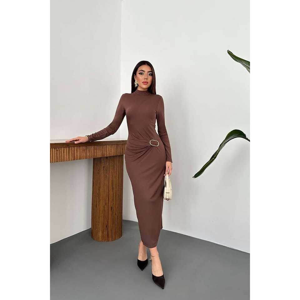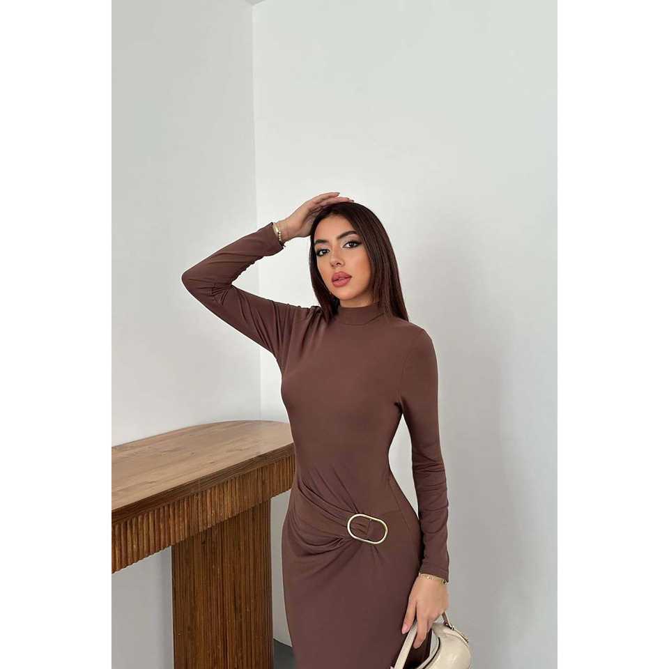Brown Sheath Dress Keyhole Neck Natural Waist Woven Fabric Comfortable Career Dress