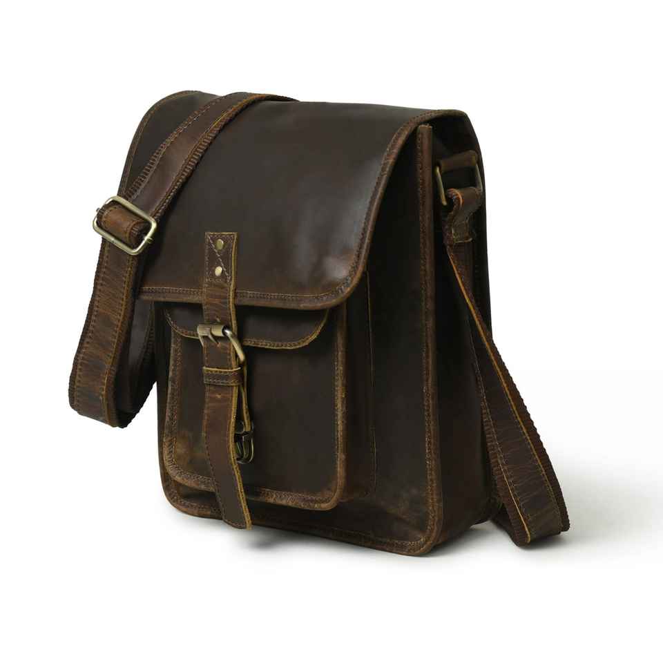 กระเป๋าเอกสารสไตล์วินเทจสีน้ำตาลเข้มพร้อมสายคล้องสลิงที่ถอดออกได้ช่องหลักและกระเป๋าภายนอก