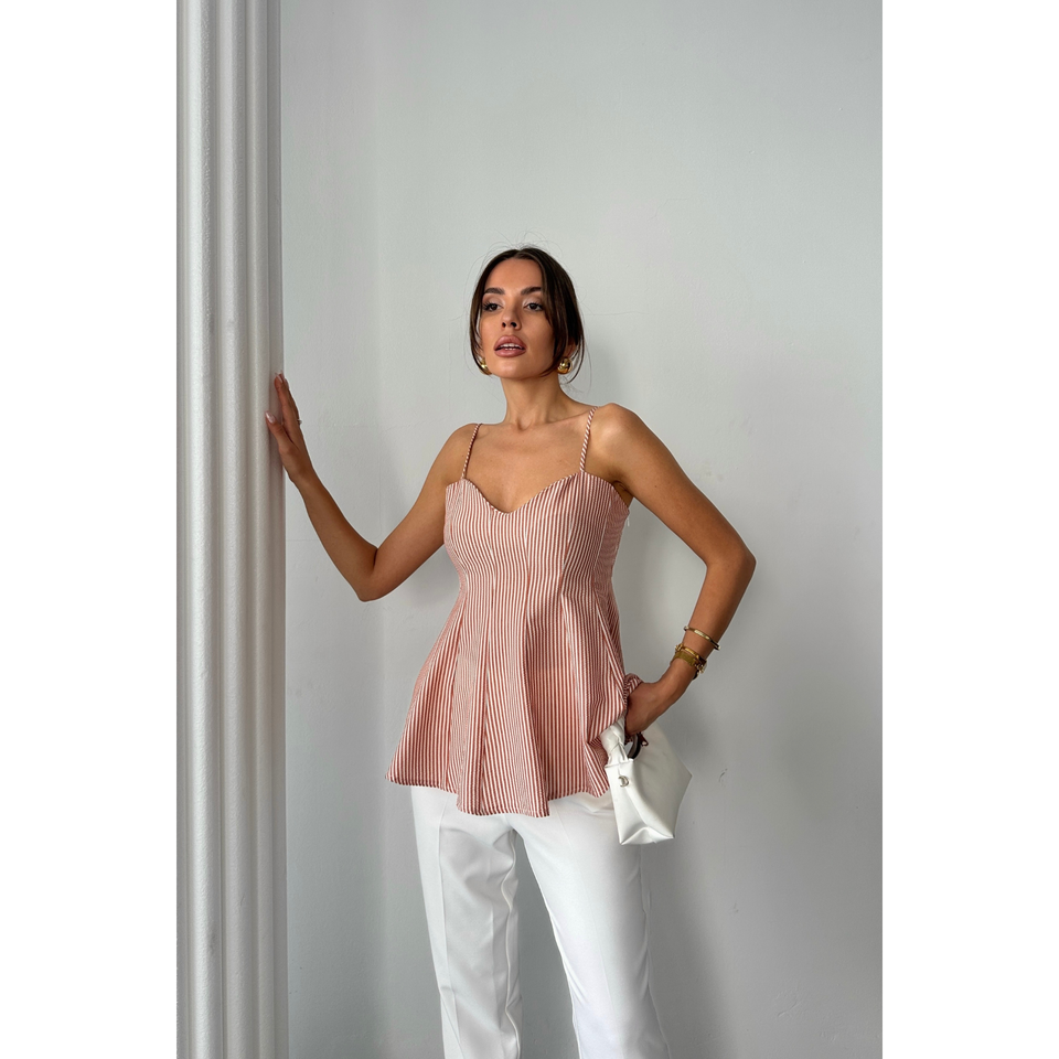 เสื้อสายเดี่ยวลายวาฟเฟิลสีน้ำตาลแต่งดีเทลสีเข้ม ไซส์ S สำหรับผู้หญิง