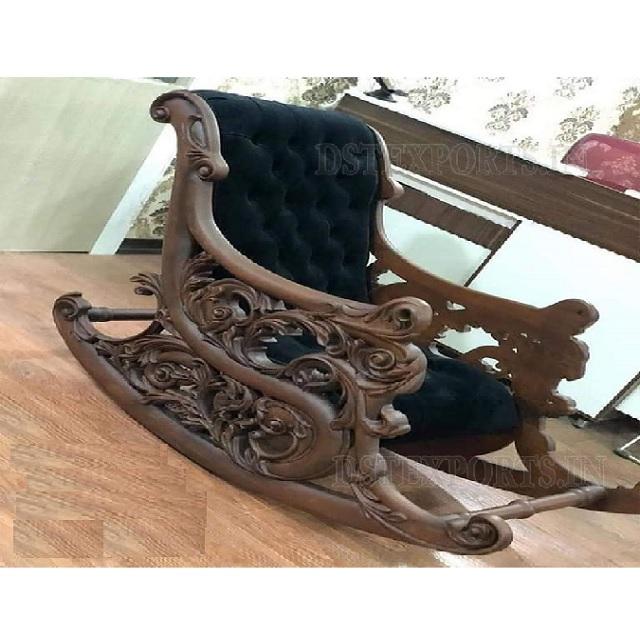 เก้าอี้โยกไม้สักสีน้ำตาลโบราณ เก้าอี้โยกแกะสลักด้วยมือโบราณสำหรับบ้าน เก้าอี้โยกแสนสบายสำหรับห้องนอน