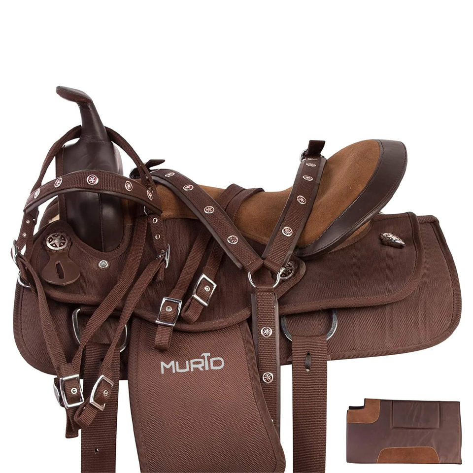 อานม้าแบบ Western Pleasure Trail ของ Brown Texas Star ทำจากหนังแท้และวัสดุสังเคราะห์ Cordura ให้ความสบาย เหมาะสำหรับการขี่ม้าแบบ Trail Riding