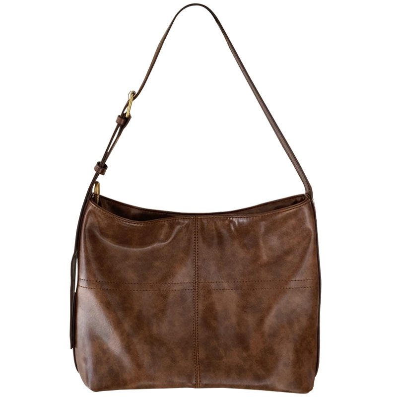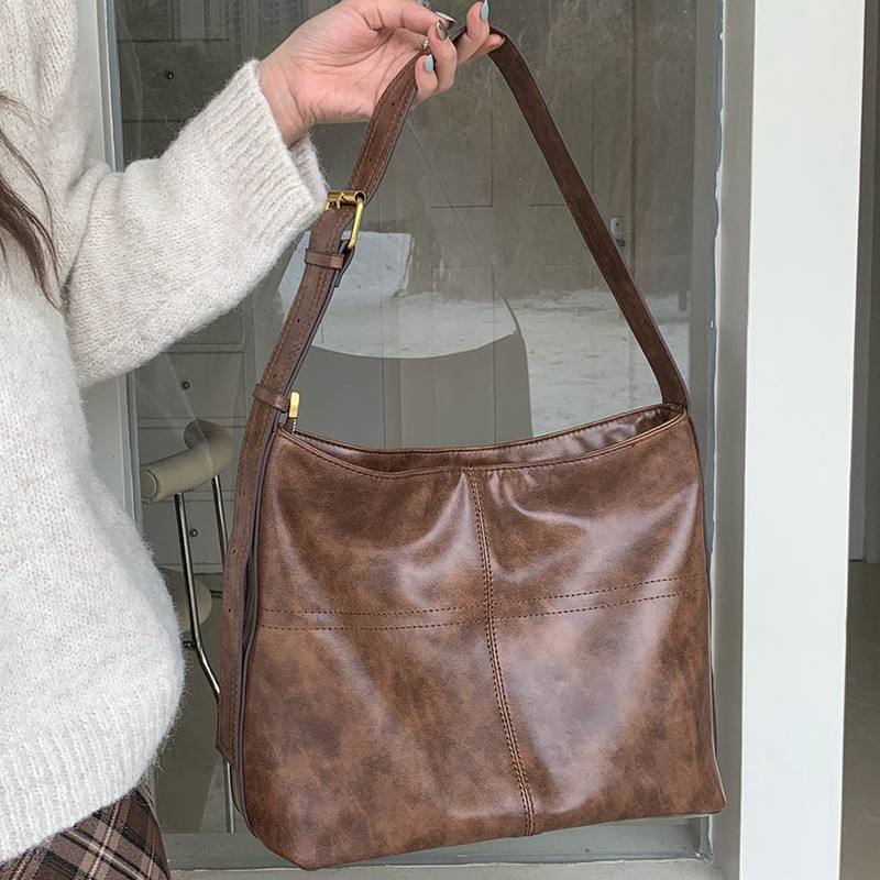 กระเป๋าโท้ทสีน้ำตาล ทรงสี่เหลี่ยมแนวนอน สีพื้น มีซิปปิด ชุดลำลองทุกวัน สไตล์เกาหลี กระเป๋าสะพายข้าง H8926