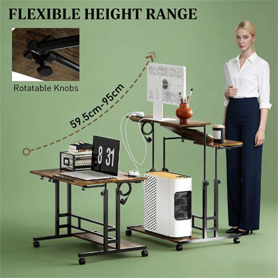 โต๊ะทำงาน/โต๊ะคอมพิวเตอร์สีน้ำตาลทรงตั้งตรงสำหรับพื้นที่ทำงานที่เหมาะสมที่สุด