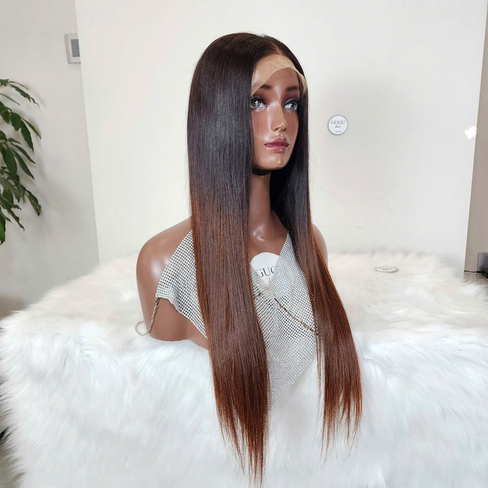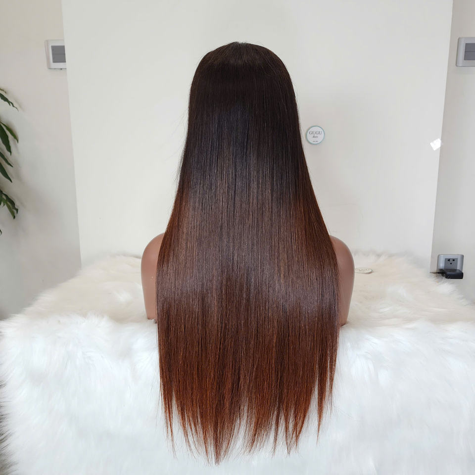วิกผมมนุษย์แท้จากเวียดนามสีน้ำตาลผมตรงติดลูกไม้ใสเรียบเงางามแบบไม่มีกาว