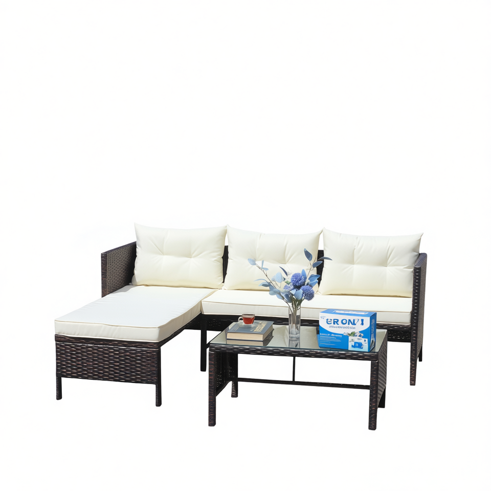 ชุดโซฟาหวายสีน้ำตาลสำหรับกลางแจ้ง 3 ชิ้น พร้อมเบาะรองนั่ง ดีไซน์ทันสมัยแบบแบ่งส่วน