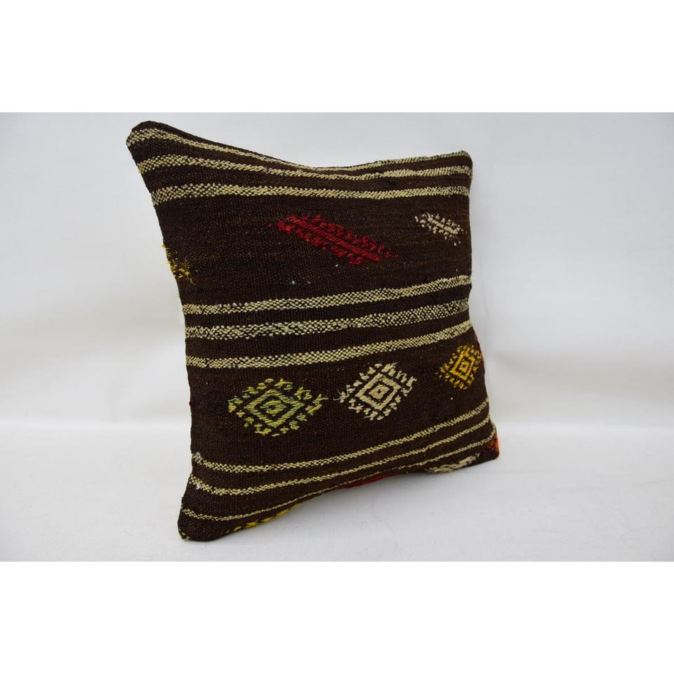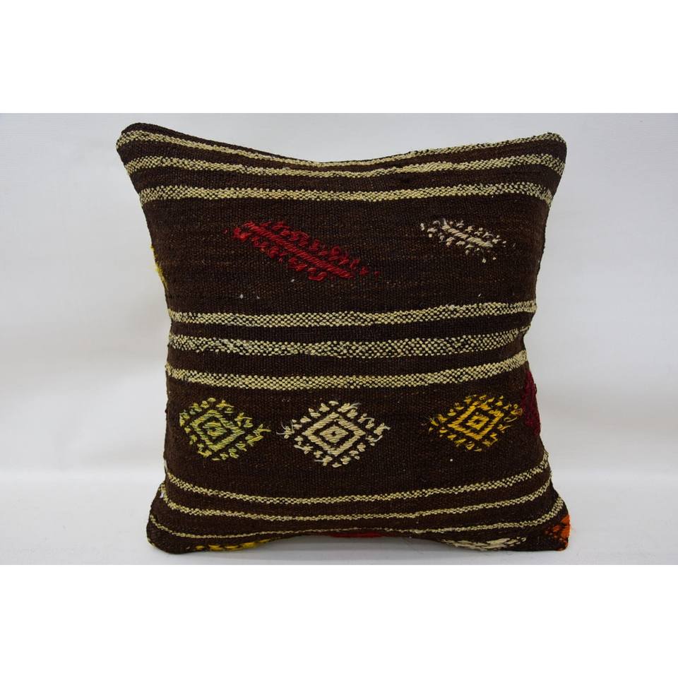 หมอนผ้าวูลสีน้ำตาลถัก18X18นิ้วสุดหรูถักทอด้วยดอกไม้สไตล์วินเทจลายใบไม้สำหรับห้องครัว