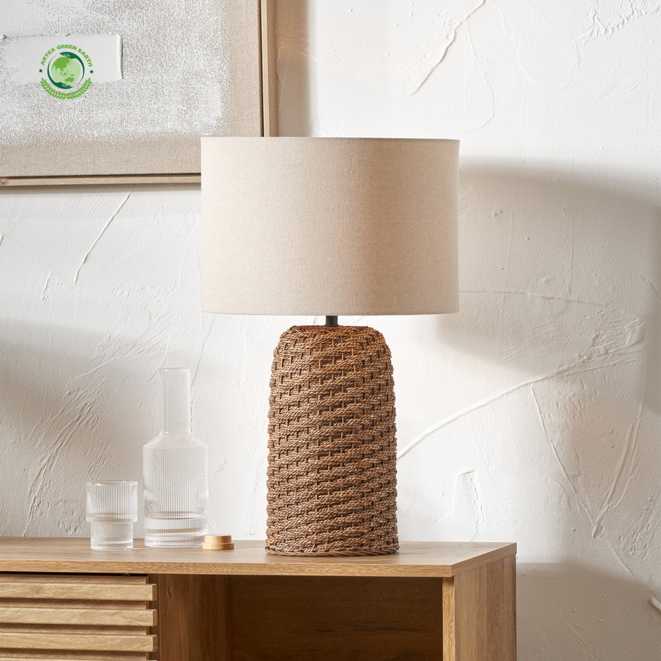 Brown Woven Seagrass Table Lamp, Lamps made from handmade materials, home decoration accessories, wholesale.