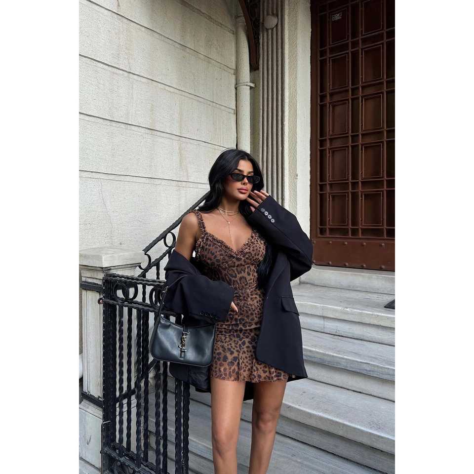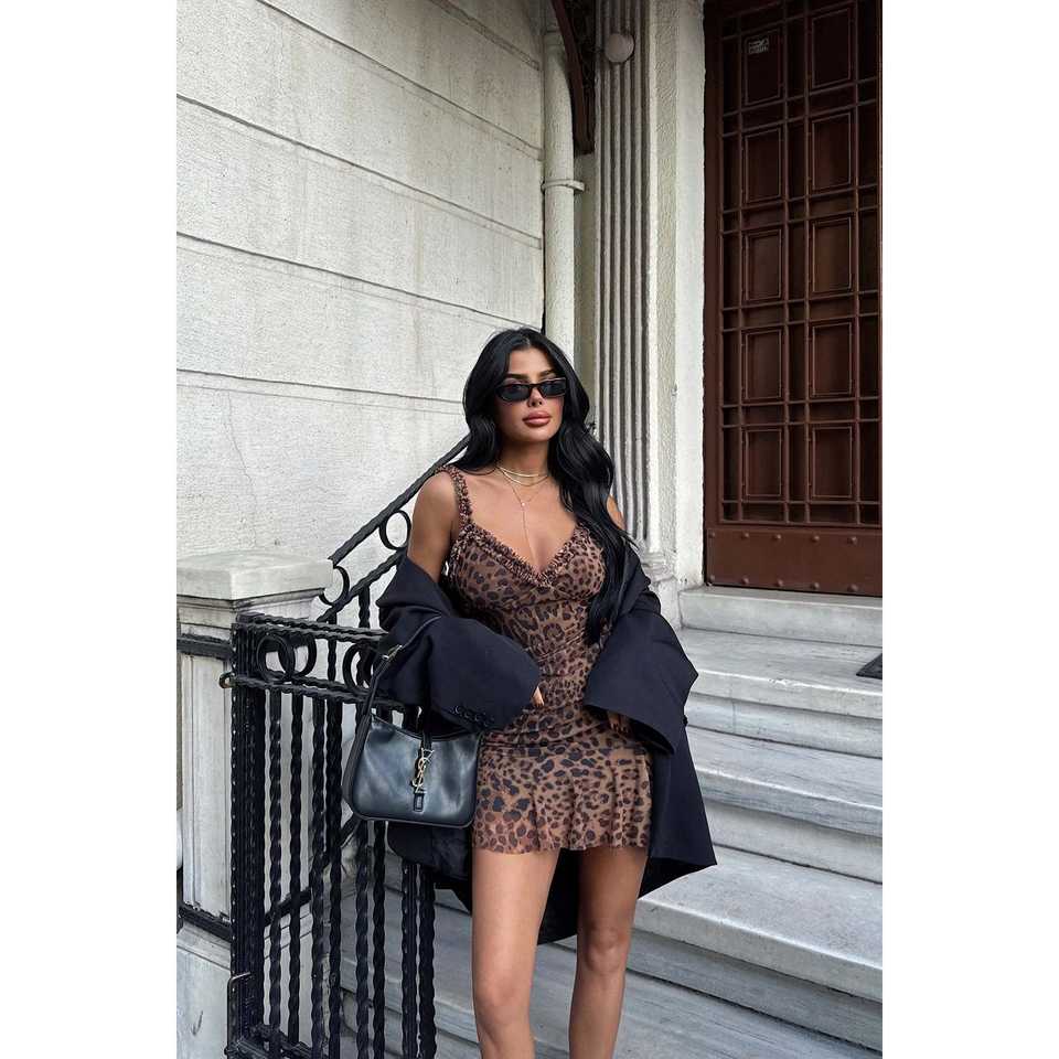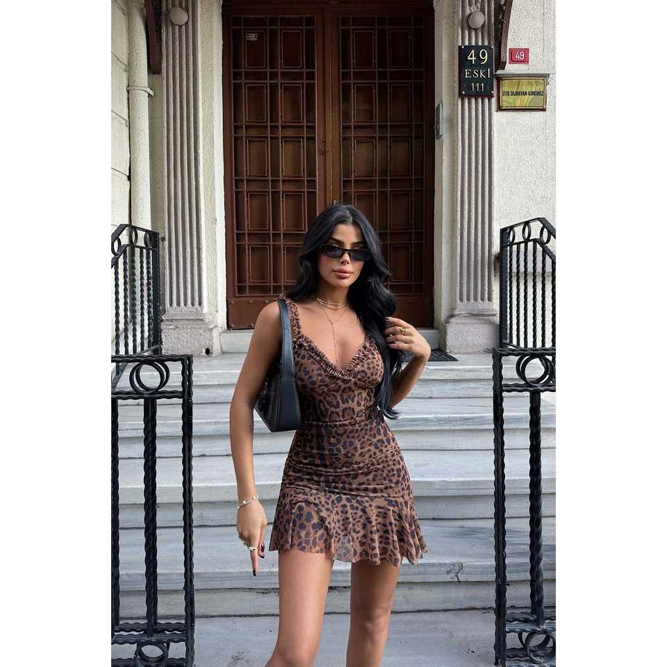 Brown Zadie Leopard Print Mini Tulle Prom Dress