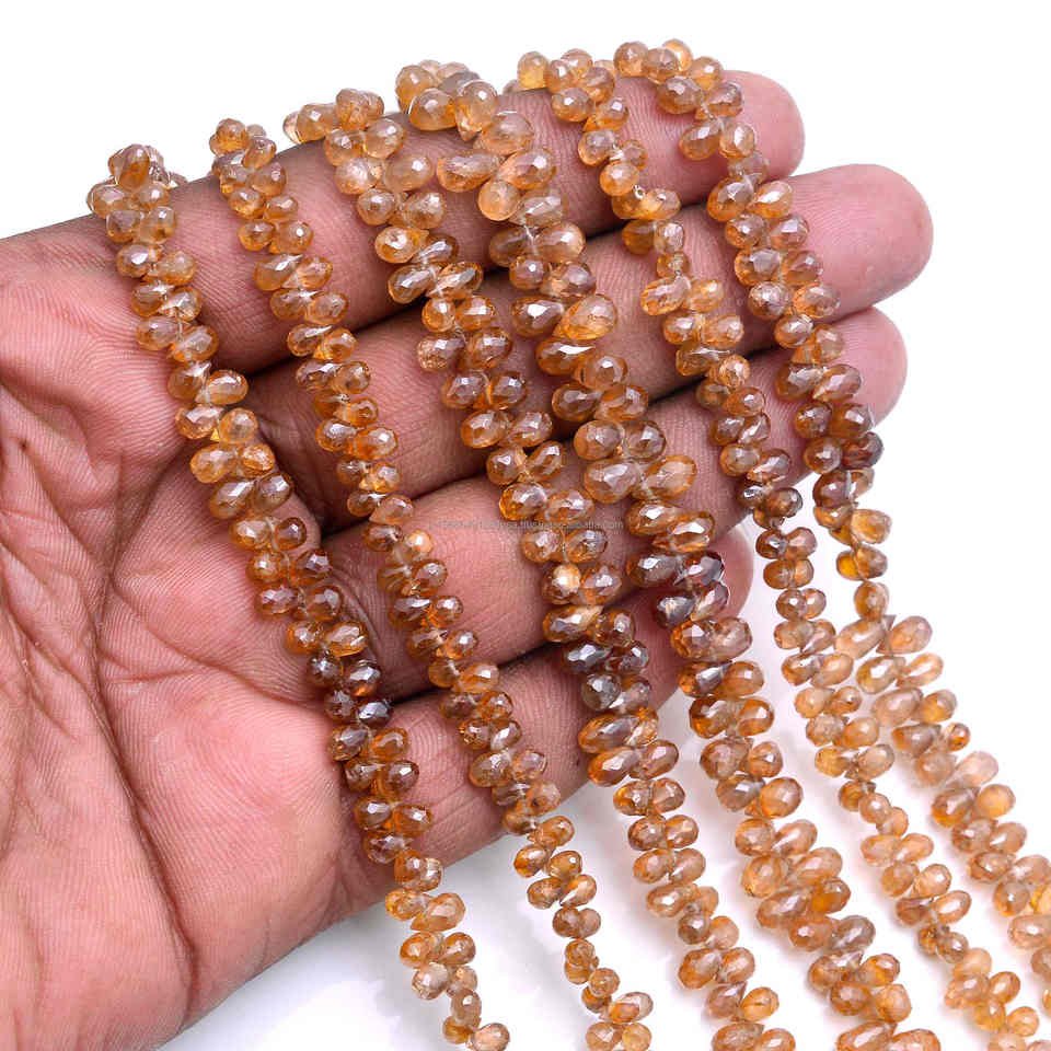 ลูกปัดพลอยเซอร์คอนเจียระไนแบบหยดน้ำสีน้ำตาลใช้ในการทำเครื่องประดับลูกปัดพลอยเพทายคริสตัลใช้ในการทำเครื่องประดับ