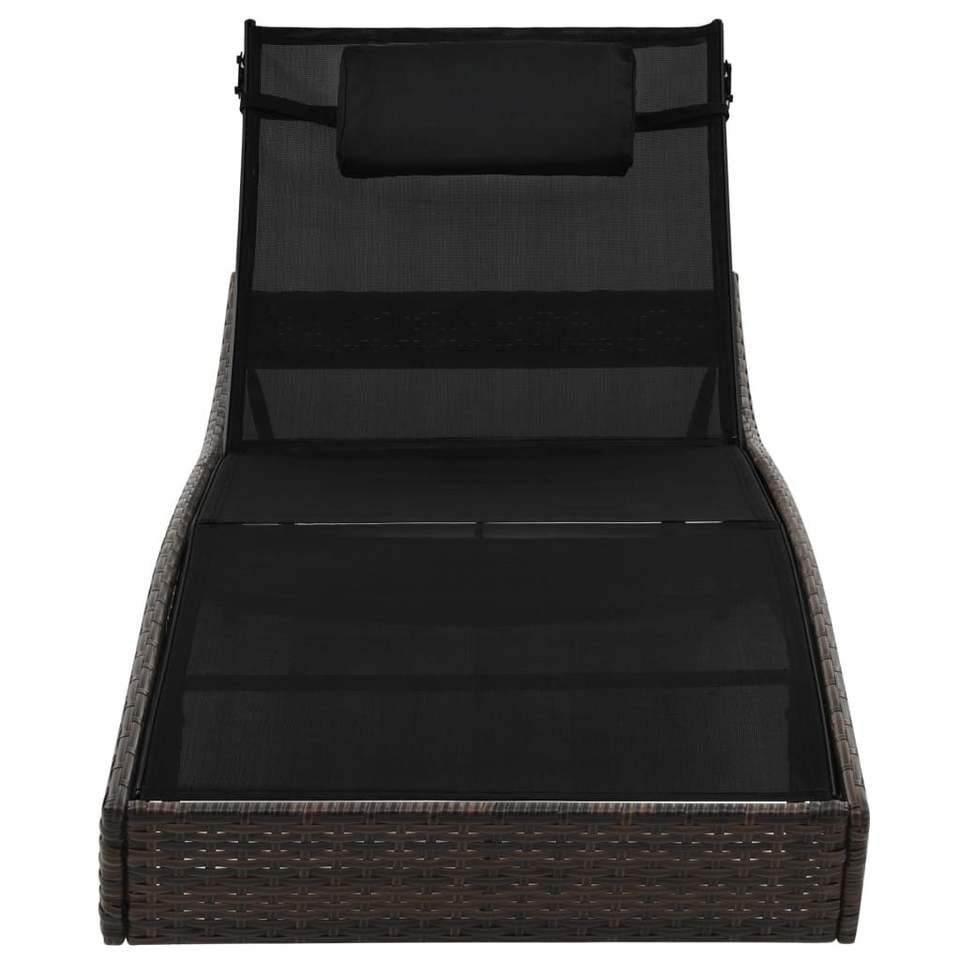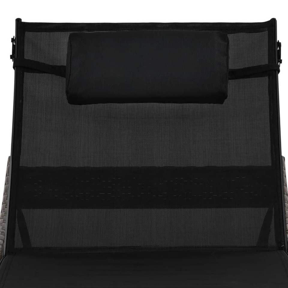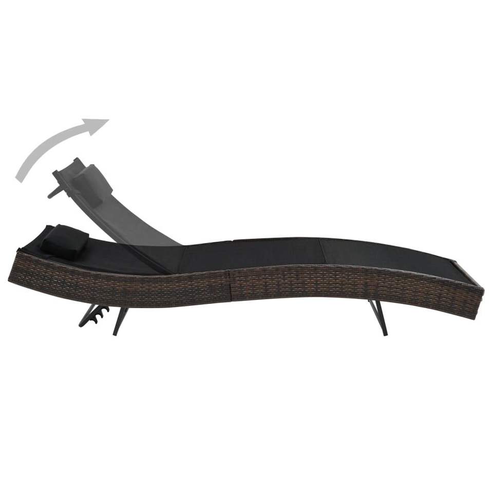 เก้าอี้อาบแดดเหล็กหวายเทียมสีน้ำตาลและสีดำ พร้อมผ้าเท็กซ์ไทล์ ทนทานสำหรับใช้งานกลางแจ้ง