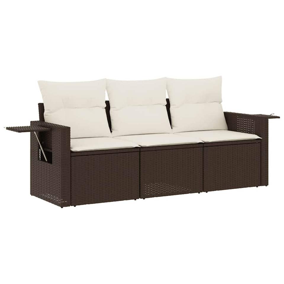 ชุดโซฟาสวนสีน้ำตาลครีมขาว 3 ที่นั่ง ทนทานต่อรังสียูวี ทำจากหวาย PE เฟอร์นิเจอร์กลางแจ้ง พร้อมเบาะกันน้ำ ดีไซน์ร่วมสมัย