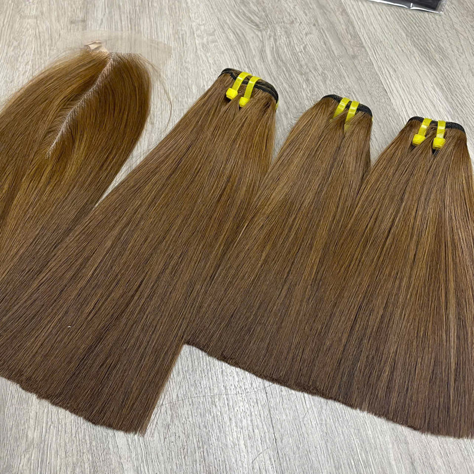 ชุดทำวิกผมสีน้ำตาลพร้อมเชือกผูกผม คุณภาพผมเวียดนามแบบ Super Double Drawn คุณภาพสูง ขายดี ผมแท้