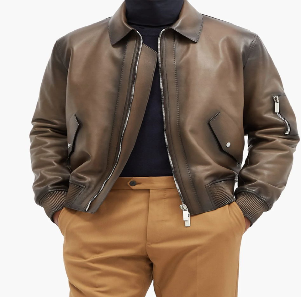 เสื้อแจ็กเก็ตบอมเบอร์หนังสีน้ำตาลมีปกคอทรงพอดีทันสมัยดีไซน์สะอาดเรียบง่ายเสื้อแจ๊กเก็ตลำลองมีจำหน่ายในราคาขายส่ง