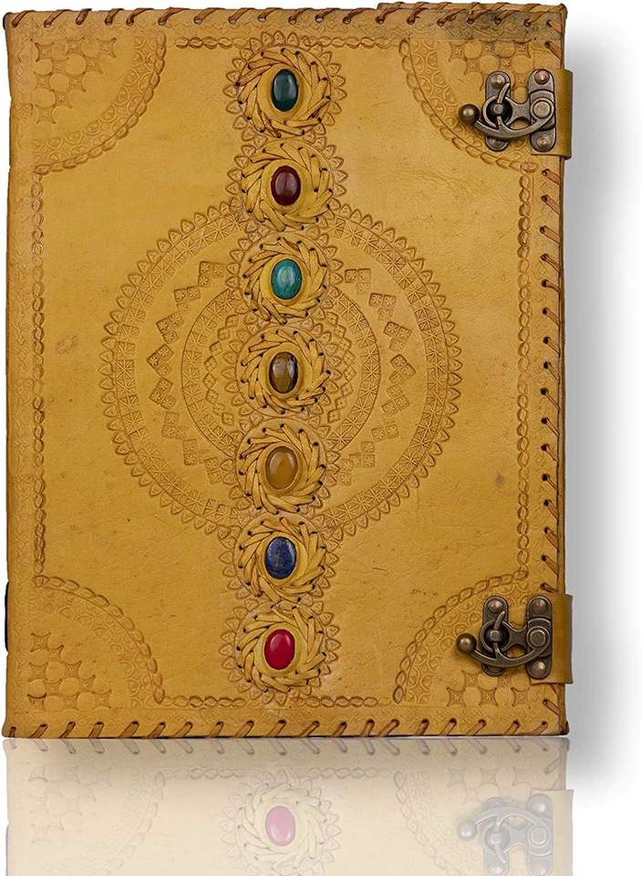 ประเภท:สมุดบันทึกหนังสีน้ำตาลกับเจ็ดจักระทำด้วยมือ