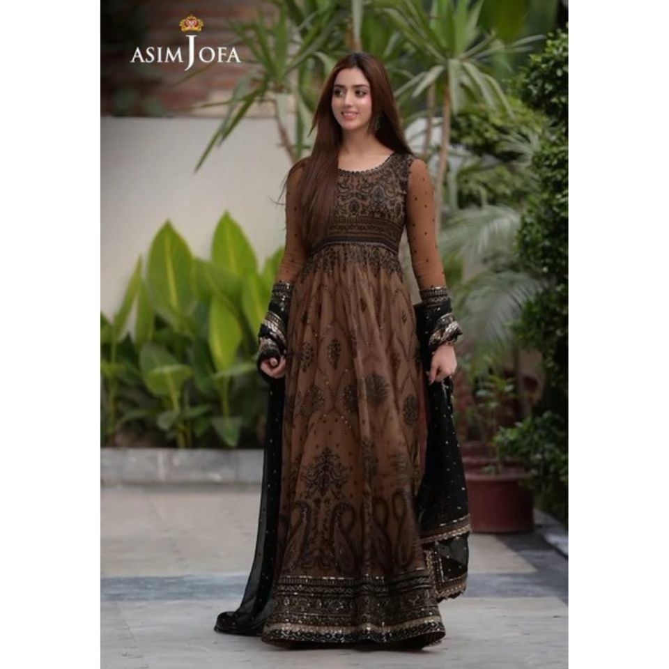 ชุดเดรสยาวผ้าชีฟองสีน้ำตาลดำสุดพิเศษ พร้อมผ้าคลุมไหล่ผ้าชีฟอง | 3pec แบบไม่เย็บติดกัน