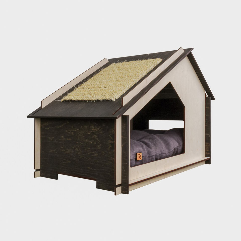 บ้านสัตว์เลี้ยงสีน้ำตาลเข้มหลังคาไม้ ระบายอากาศได้ดี ใช้ได้ทั้งในบ้านและนอกบ้าน สำหรับแมว สัตว์ขนาดเล็ก ที่อยู่อาศัยสำหรับลูกแมวทุกฤดู