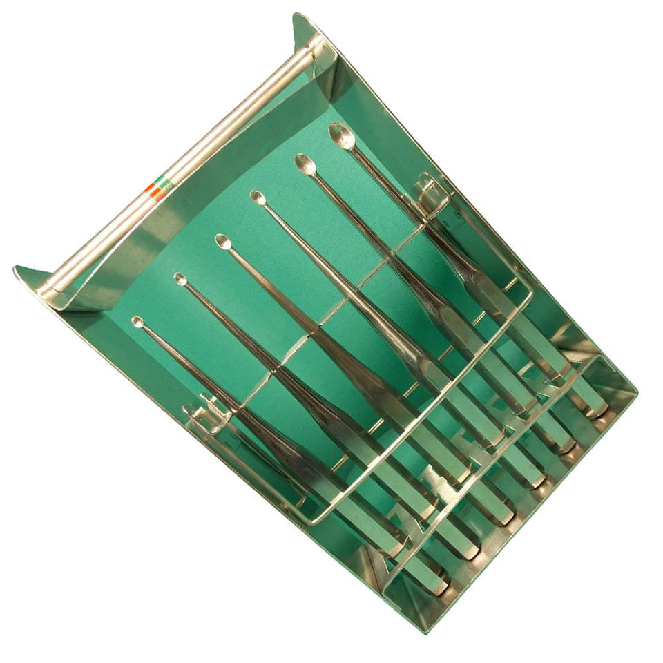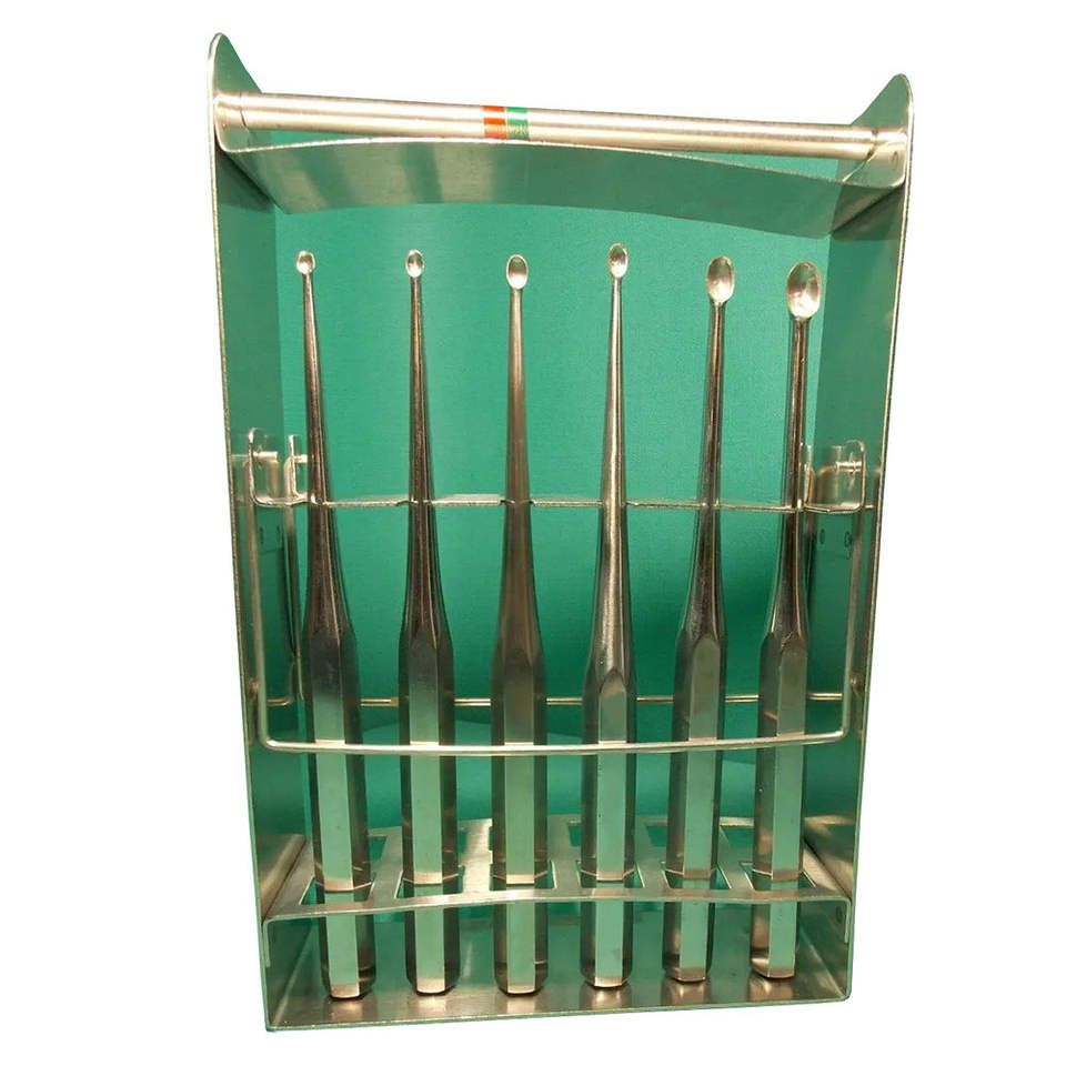 ชุดเครื่องมือขูดกระดูกบรุนโบน คิวเร็ต แบบช้อนกลมคม 17 ซม. ด้ามเหล็ก แกนตรง ถ้วยรูปไข่ เครื่องมือกระดูกสำหรับศัลยกรรมกระดูก โดย Grip Surgical