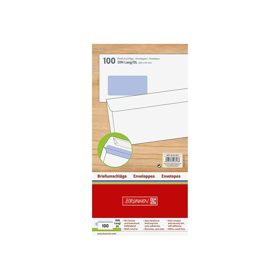 Brunnen briefumschläge DIN Lang MIT fenster selbstklebend weiβ 100 stück
