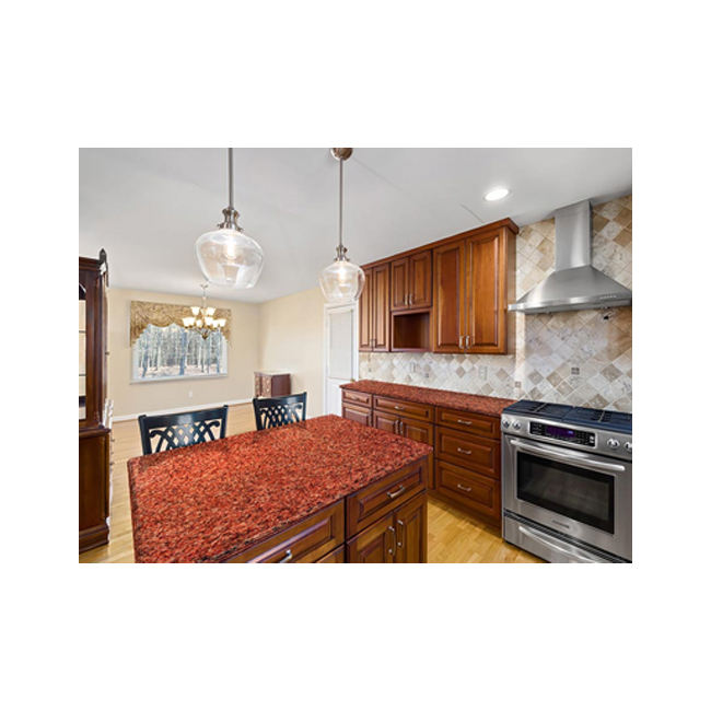 Bruno แผ่นหินแกรนิตสีแดงที่ทันสมัยสำหรับห้องครัวห้องน้ำการออกแบบตกแต่งภายในหินธรรมชาติที่มีพื้นผิวขัดมัน