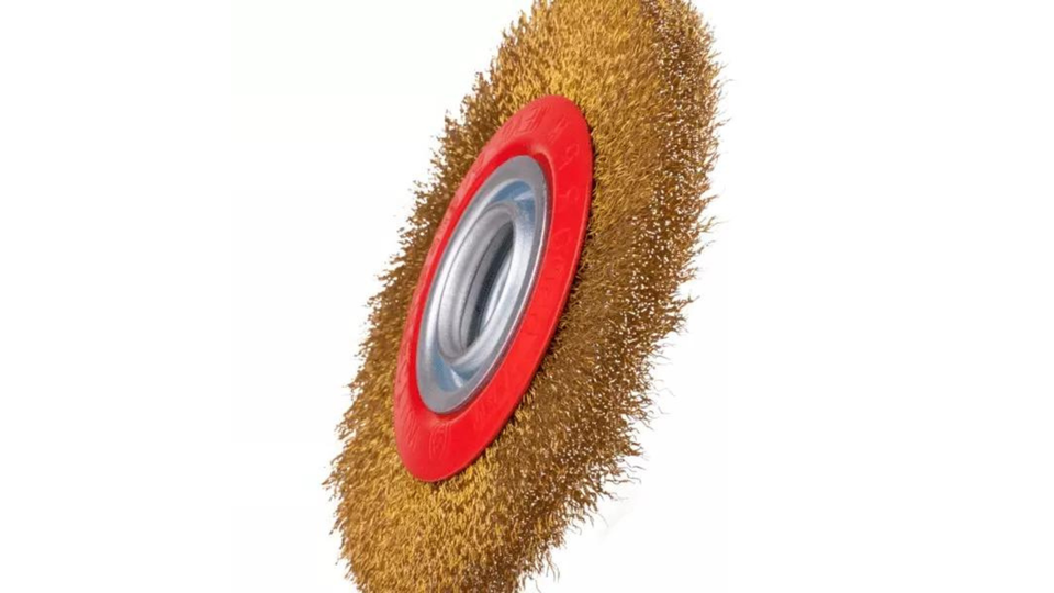 แปรงขัดลวดเหล็กเคลือบทองเหลืองแบบจีบ ขนาด 300 มม. (12 นิ้ว) สำหรับงานขัดอุตสาหกรรม