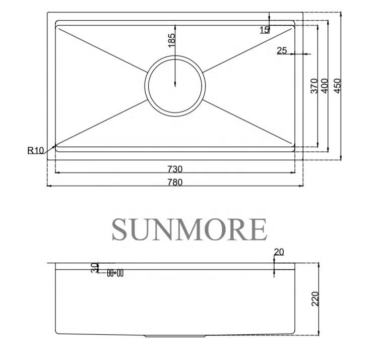 อ่างล้างจานครัวทรงสี่เหลี่ยม รุ่น Brushed 7845-1E ผลิตจากสแตนเลส 304 คุณภาพสูง ผลิตด้วยมือจากเวียดนาม ราคาดีมาก