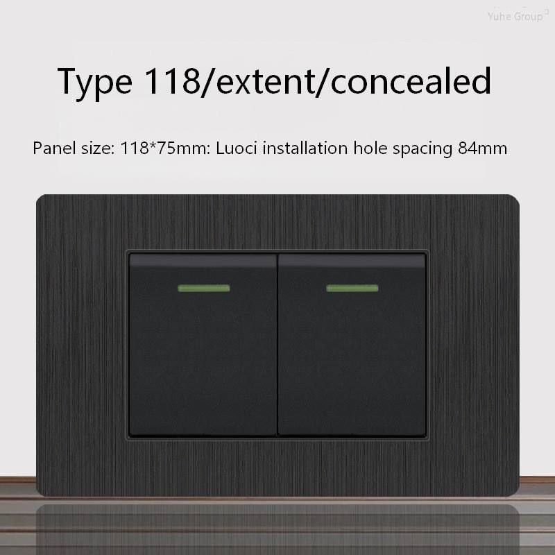 แผงควบคุมแบบสัมผัสพีซีสีดำด้าน ชุดไฟแสดงสถานะ LED แบบทางเดียว 2 ชุด สวิตช์เปิด/ปิด 10A สำหรับบันไดติดผนัง สวิตช์อเนกประสงค์ IP20