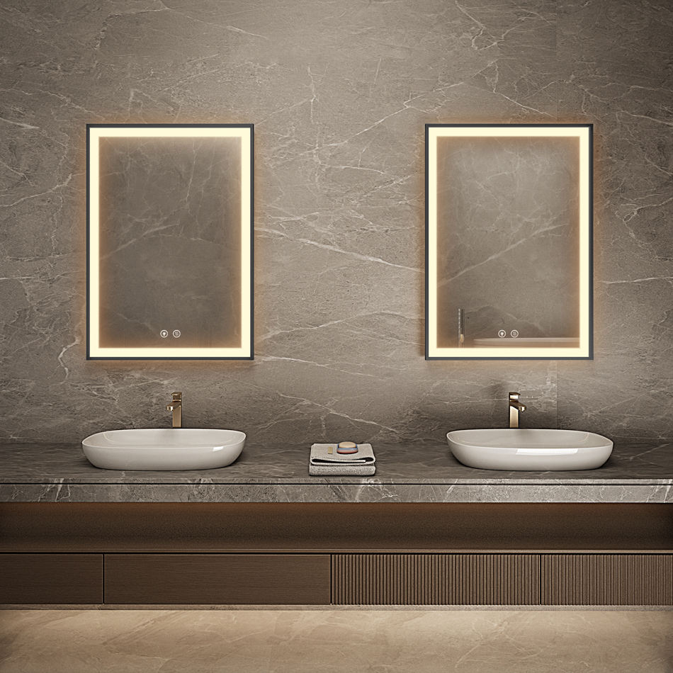 Brushed Brass Aluminum Framed Wall Mirror Smart Led Bathroom Mirror Vanity LED Mirror
