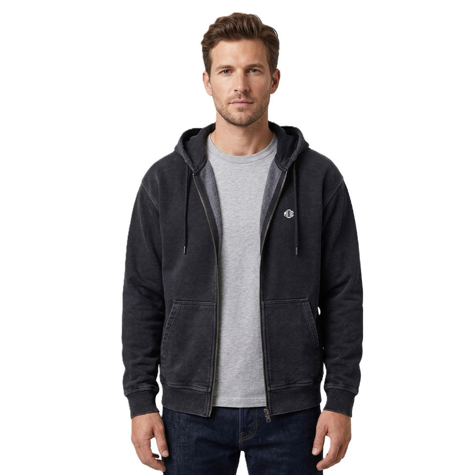 เสื้อฮู้ดซิปผ้าฟลีซสีพื้นสำหรับผู้ชาย ทรงปกติ สไตล์มินิมอลลำลอง สตรีทแวร์ รับทำโลโก้ ขายส่งจำนวนมากจากโรงงาน