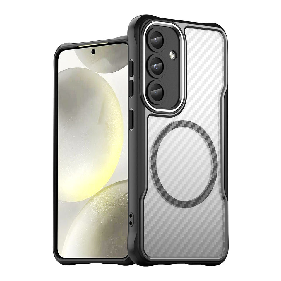 Samsung Galaxy S24 + ฝาหลังแบบแข็งเคสแม่เหล็กคาร์บอนไฟเบอร์ลายขนแปรงแฟชั่นเคสโทรศัพท์มือถือ TPU + PC