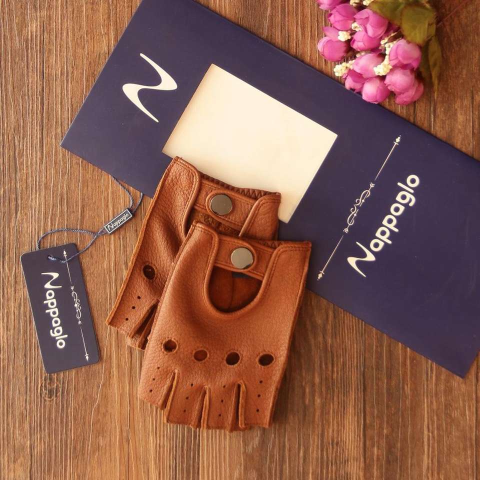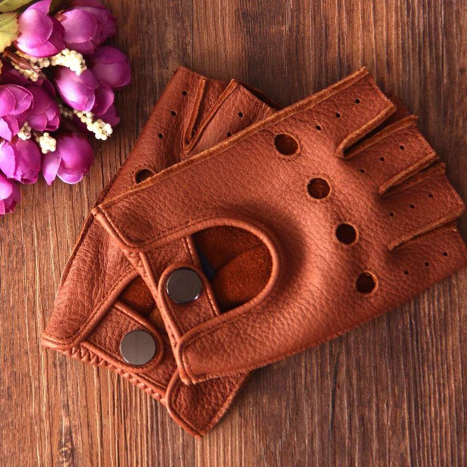 บรัสเซลส์กีฬาผู้หญิง Deerskin Fingerless ถุงมือหนังรถจักรยานยนต์ขี่จักรยานขี่ Unlined ถุงมือ
