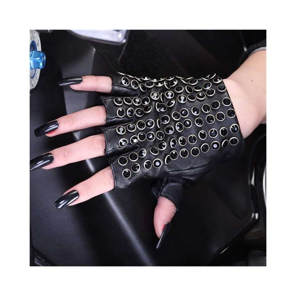 ถุงมือหนังสำหรับผู้หญิงสไตล์บรัสเซลส์สปอร์ตถุงมือขับแนวพังก์ครึ่งนิ้วถุงมือทำงาน (สี: ดำ,ขนาด: M)
