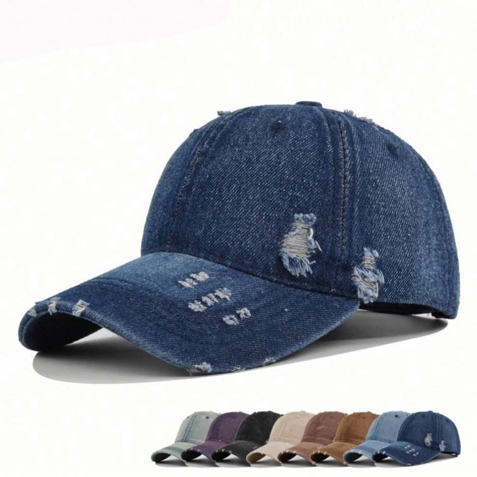 หมวกเบสบอลผ้าเดนิมสไตล์วินเทจสำหรับฤดูร้อน ยี่ห้อ Bsci Manufacturer รุ่น Distressted Worn Out Dad Hats ปี 2024