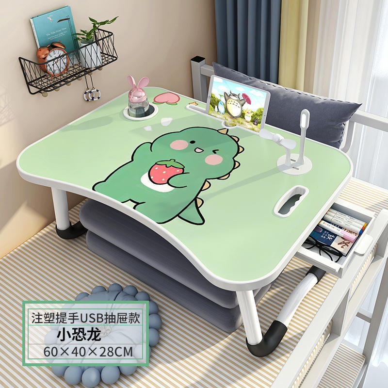 โต๊ะข้างเตียงพับได้ Bubble Rabbit ขนาด 60x40x28 ซม. โต๊ะเรียนพลาสติกพร้อมลิ้นชัก USB สำหรับใช้ในหอพักนักเรียน