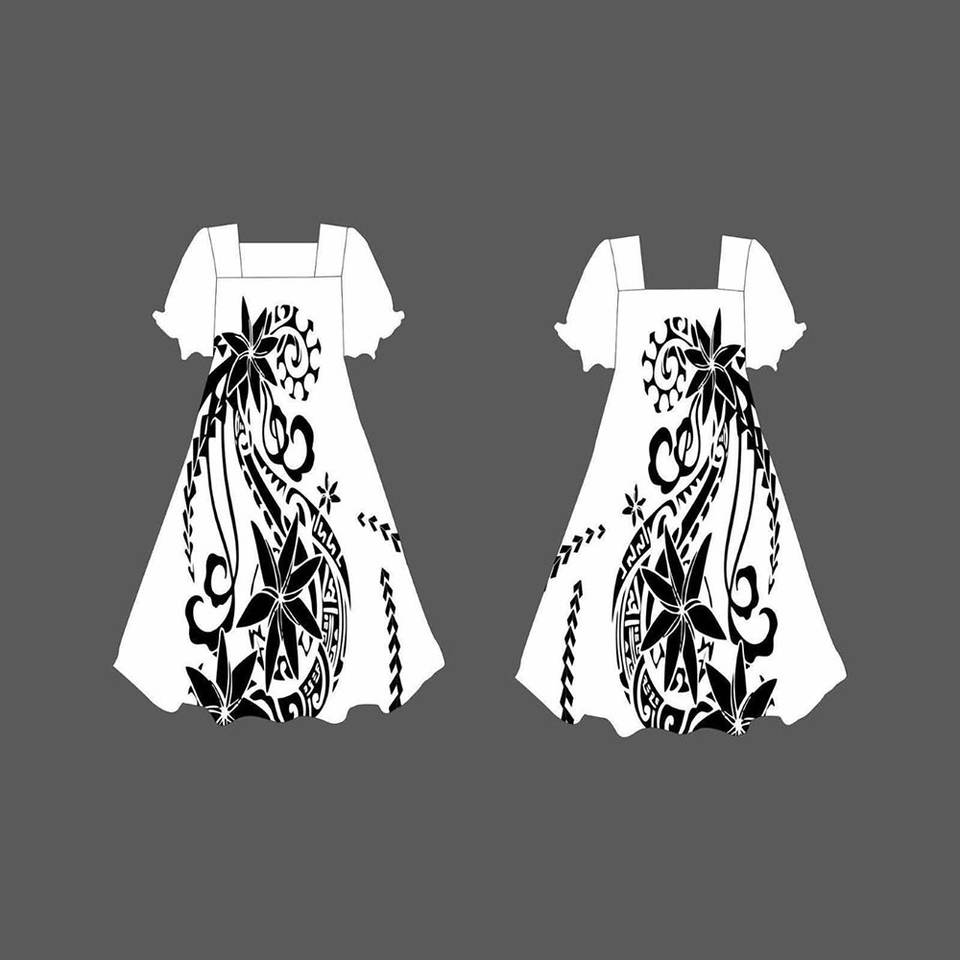 ชุดมูมูแขนพองลายโพลีนีเซียนขายส่ง ชุดมูมูไมโครนีเซียนแบบสั่งทำพิเศษ ชุดมิดิพัฟฟี่