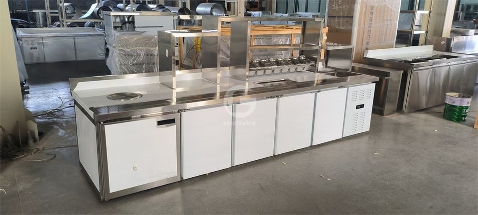 อุปกรณ์ร้านชานมไข่มุก เคาน์เตอร์บาร์นม โต๊ะทำงานชานมไข่มุก พร้อมตู้เย็น