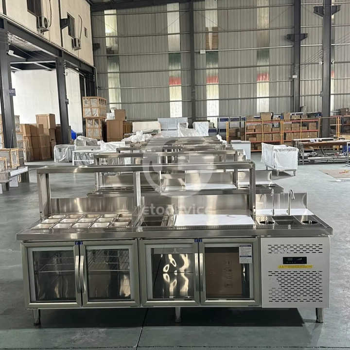 เคาน์เตอร์เตรียมชานมไข่มุก โต๊ะสแตนเลสสีฟ้า เคาน์เตอร์ชานมไข่มุก