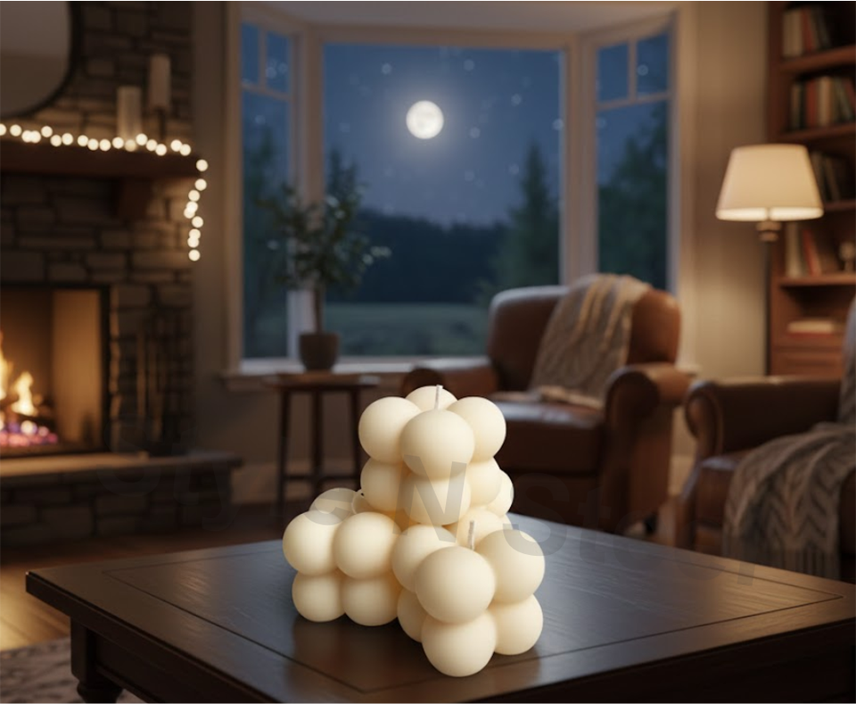 เทียนฟองสบู่และเทียนรูปทรงฟองสบู่สี่อัน สำหรับตกแต่งคริสต์มาส อีสเตอร์ วันเกิด และวันวาเลนไทน์
