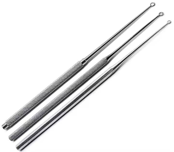 ชุดที่แคะหูแบบตรงปลายทื่อ3ชิ้น (#1, #2, #3) เครื่องมือผ่าตัดสแตนเลสสตีล
