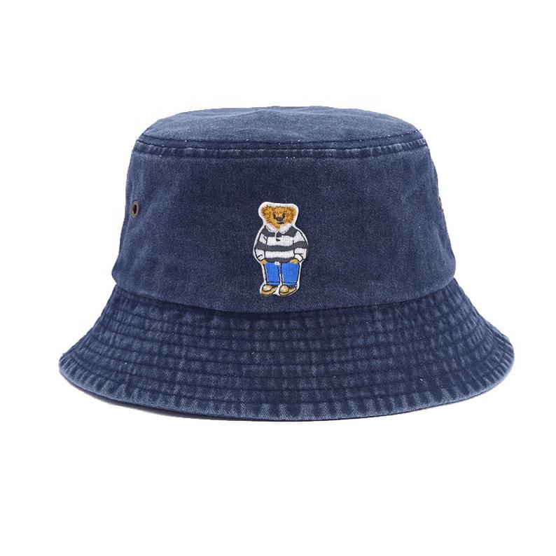 หมวกโปโลทรงถังหมวกชาวประมงฟอกสีทันสมัยปักโลโก้ได้ตามต้องการพร้อมแถบสีฟ้าและขาว