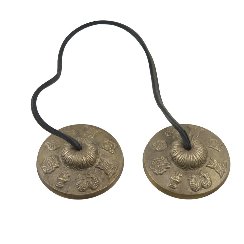 ระฆังนิ้วทองเหลืองทำมือแบบพุทธพร้อมการตกแต่งสีทอง ดีไซน์โลหะทองเหลือง สามารถออกแบบตามสั่งได้