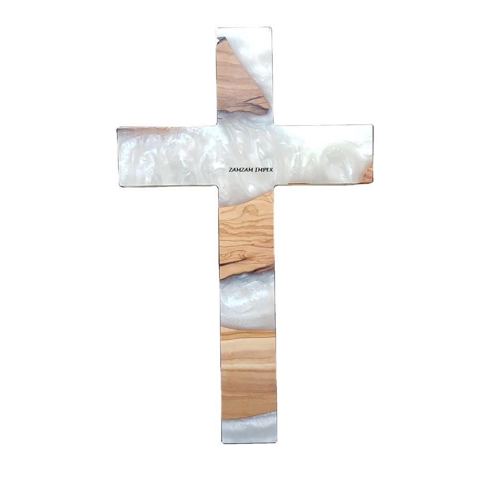 ไม้กางเขนแขวนผนังเรซิ่นลายไม้ขัดเงาสำหรับตกแต่งบ้าน ทำจากวัสดุธรรมชาติ สามารถปรับแต่งสีและขนาดได้