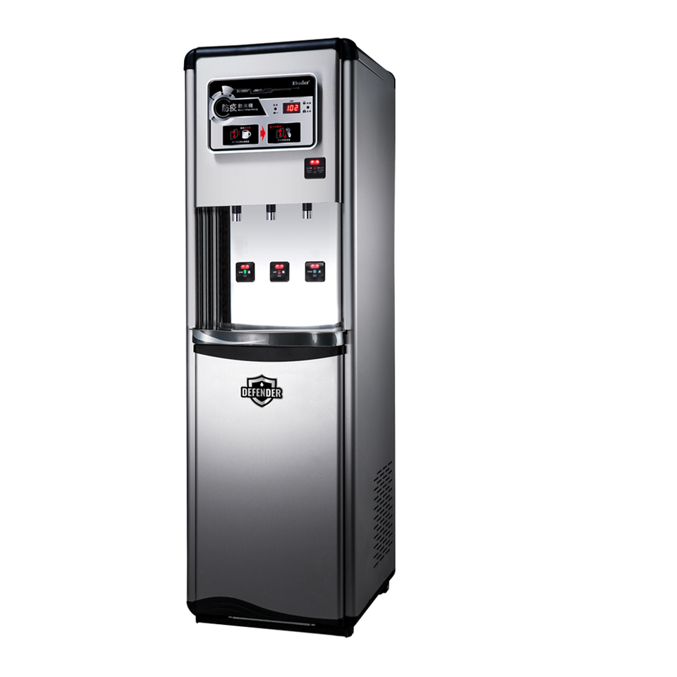 เครื่องทำน้ำร้อนน้ำเย็นแบบตั้งพื้น ยี่ห้อ “ไต้หวัน บูเดอร์” ทำจากสแตนเลสสตีลสุญญากาศ พร้อมเซ็นเซอร์ควบคุมอุณหภูมิสามระดับ