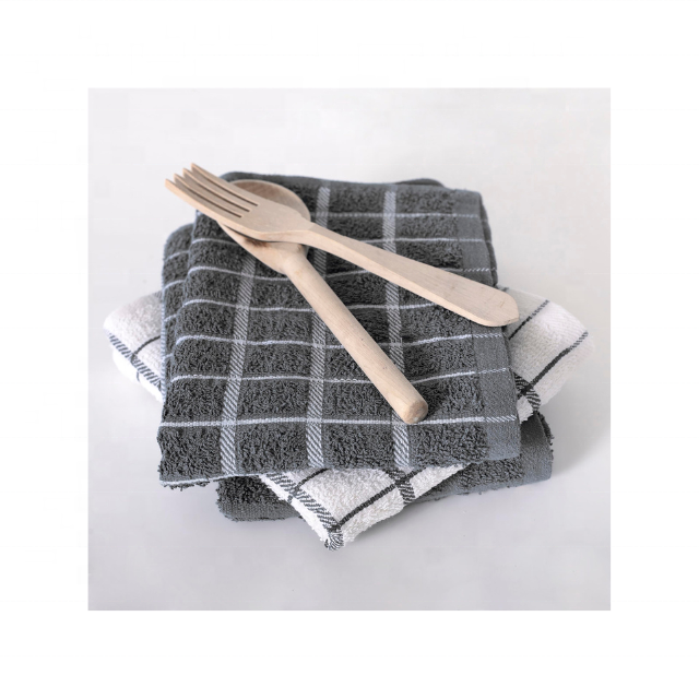 ผ้าขนหนูในครัวผ้าฝ้ายปักลาย100% ลายตารางสีดำเป็นมิตรกับงบประมาณผ้าเช็ดตัวในครัว250แบบเรียบง่ายระบบ GSM อินเดียผลิตแบบ MOQ 50ชิ้น