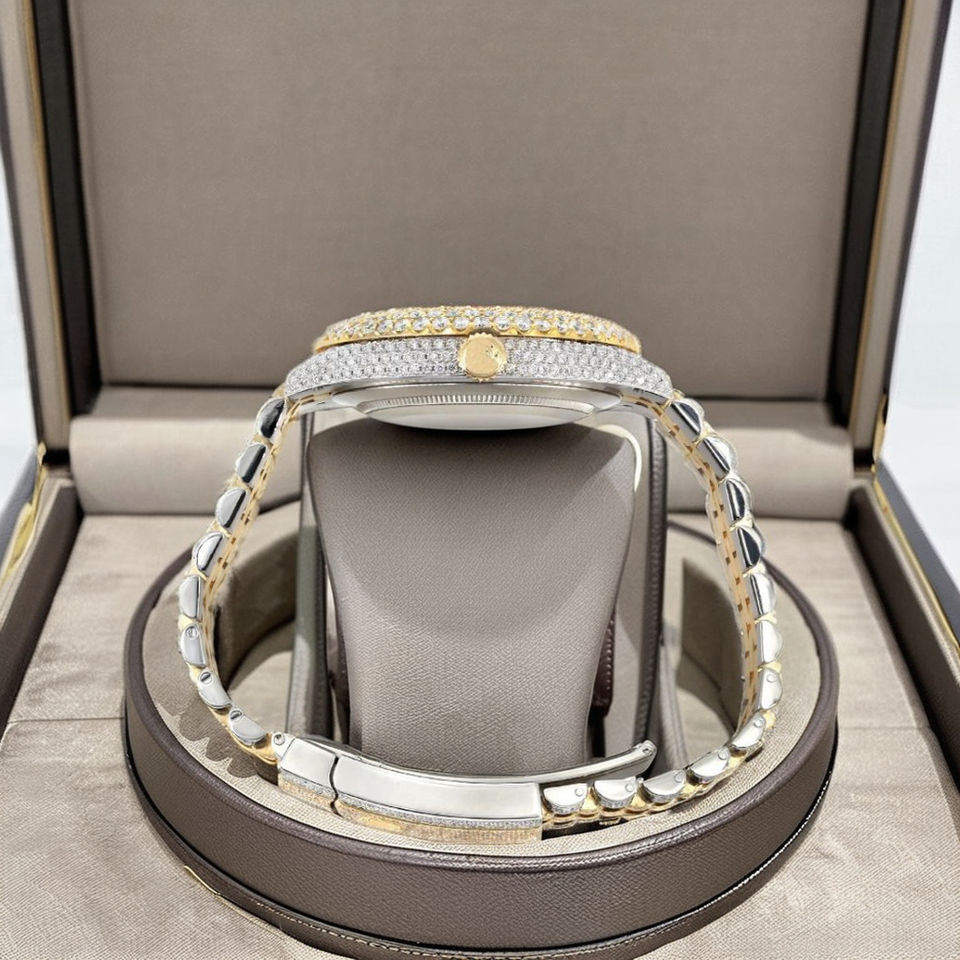 นาฬิกาอัตโนมัติ Moissanite หน้าปัดมุกลายเอฟเฟกต์สายรุ้งเป็นมิตรกับงบประมาณนาฬิกาอัตโนมัติสายสแตนเลสสองสี