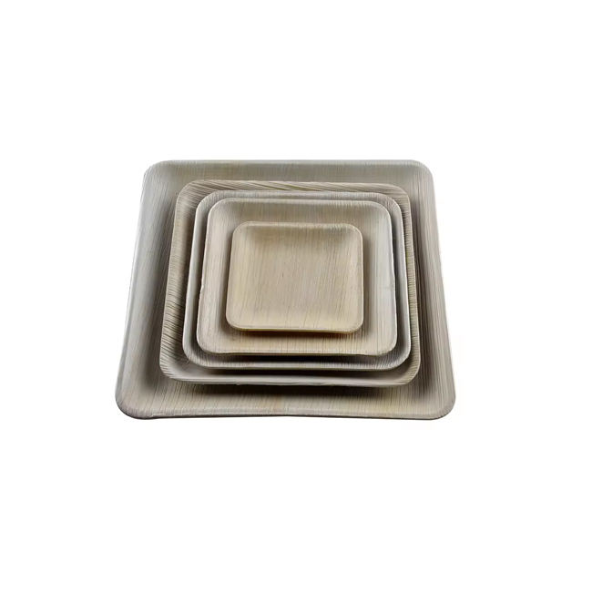 แผ่นใบปาล์มทรงสี่เหลี่ยมแบบย่อยสลายได้ชุดคอมโบแบบใช้แล้วทิ้งมีหลายขนาดและรูปทรงสำหรับเสิร์ฟอาหารในงานแต่งงาน