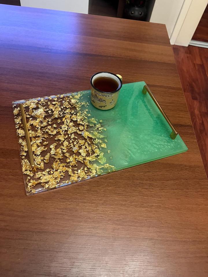 ถาดเรซิ่นราคาประหยัดพร้อมที่รองแก้ว ลายแบบต่างๆ ทำด้วยมือ ปรับแต่งได้ ทนทาน ชุดเสิร์ฟตกแต่งสำหรับห้องครัว ห้องรับประทานอาหาร และห้องนั่งเล่น