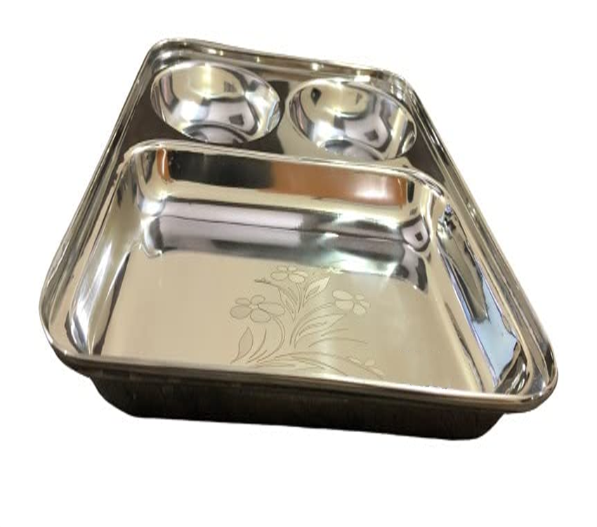 จานอาหารแบ่งช่องสแตนเลสแบบประหยัด – ถาดอาหาร 3 ช่องสำหรับใช้ในบ้านและโรงอาหาร