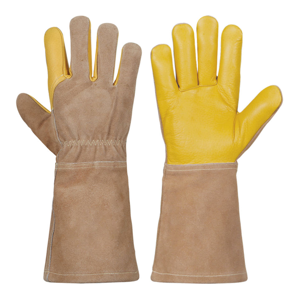 ถุงมือเชื่อมหนังพร้อม100% เพื่อความปลอดภัยถุงมือป้องกันความร้อนที่เหมาะสม
