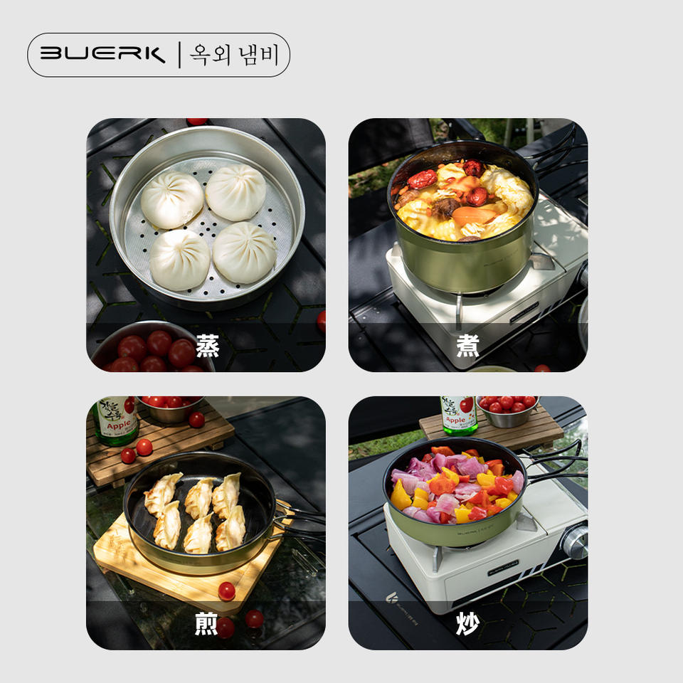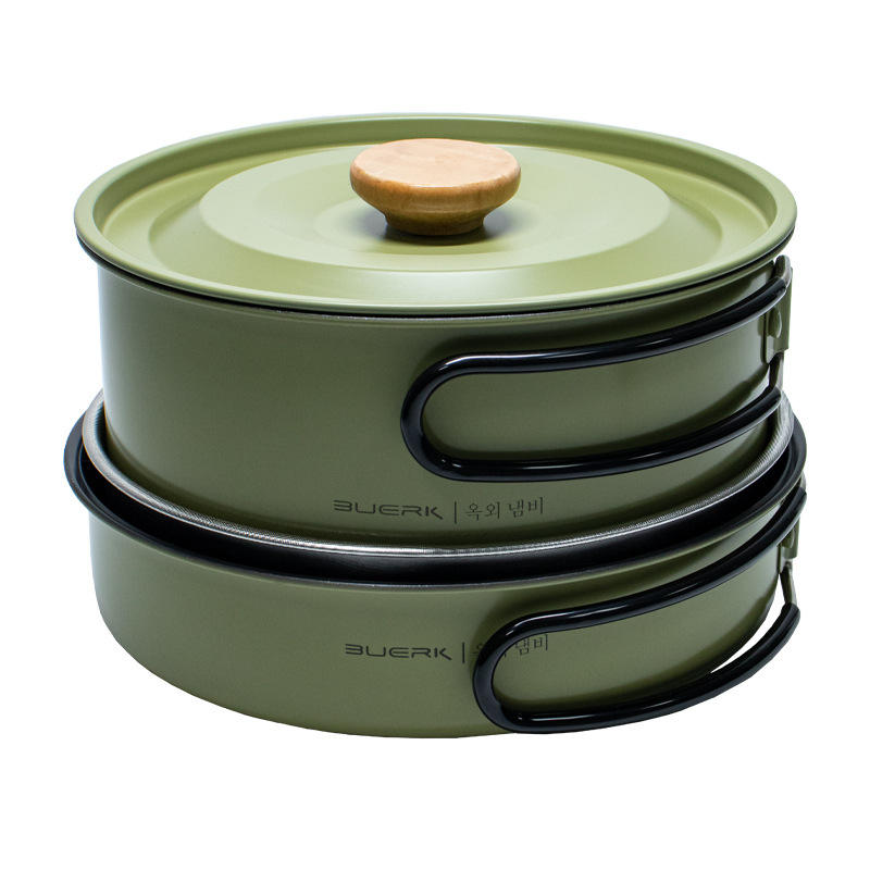 Buerk Outdoor Camping Cookware Set Portable SUS304 Enamel Non Stick Pan Minimalist Design For Hiking Travel